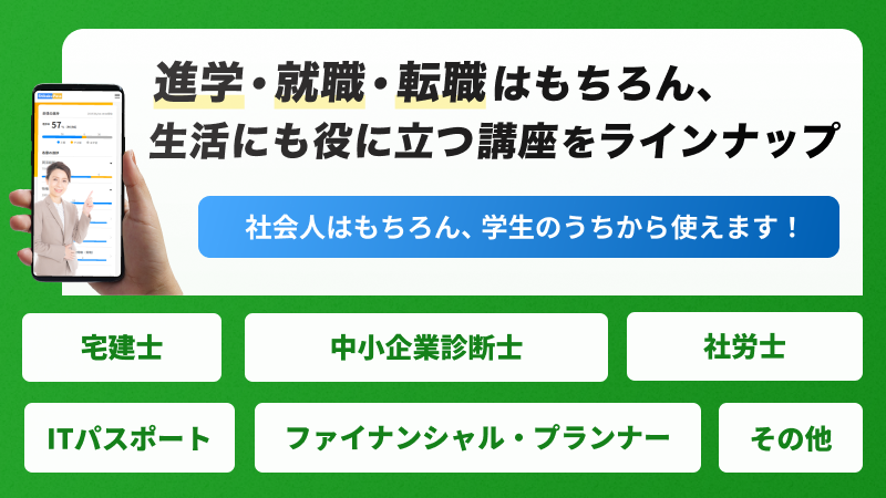 資格合格を目指す方はもちろん、これまで学んだ内容をもう一度おさらいしたい方や、お金・ITなどの生活や仕事に役立つ知識を身につけたい方にもおすすめです。