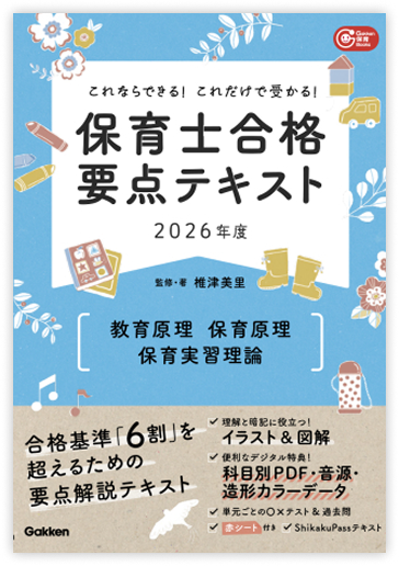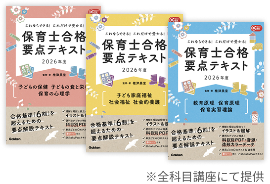 - ※本講座の参考書テキストにおけるテキストの著作権は、Gakken刊『これならできる!これだけで受かる!保育士合格要点テキスト2026年度』(2025年9月11発売)に帰属します。