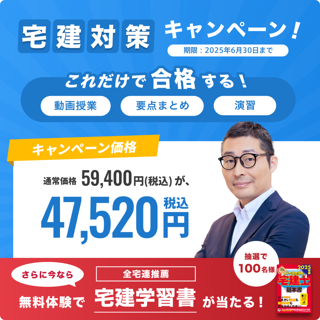 宅建の全分野コースの20%割引のキャンペーンを、2025年6月30日まで延長いたします。