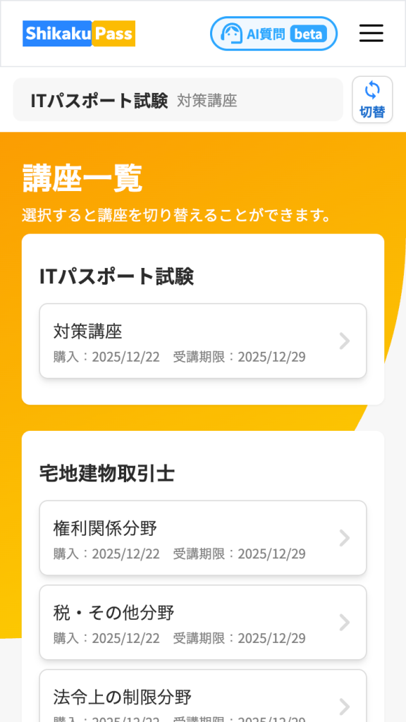 今後とも、皆様の学習をサポートできるよう機能改善に努めてまいります。 引き続きShikaku Passをよろしくお願いいたします。
