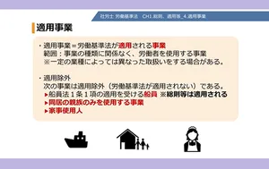 - たとえば「家事使用人」は、労働契約法は適用されるが、労働基準法や労災保険法は適用除外