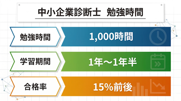 中小企業診断士試験に必要な学習時間は、一般に1,000時間程度とされています。